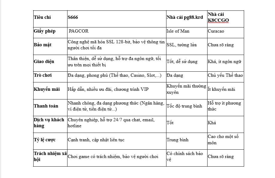 So sánh nhà cái S666 với các nhà cái khác