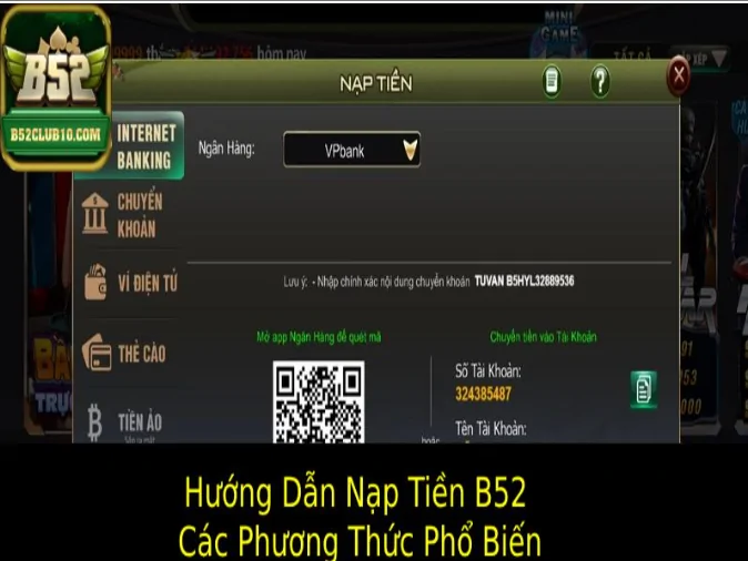 Hướng Dẫn Nạp Tiền B52 - Thông Qua Ngân Hàng