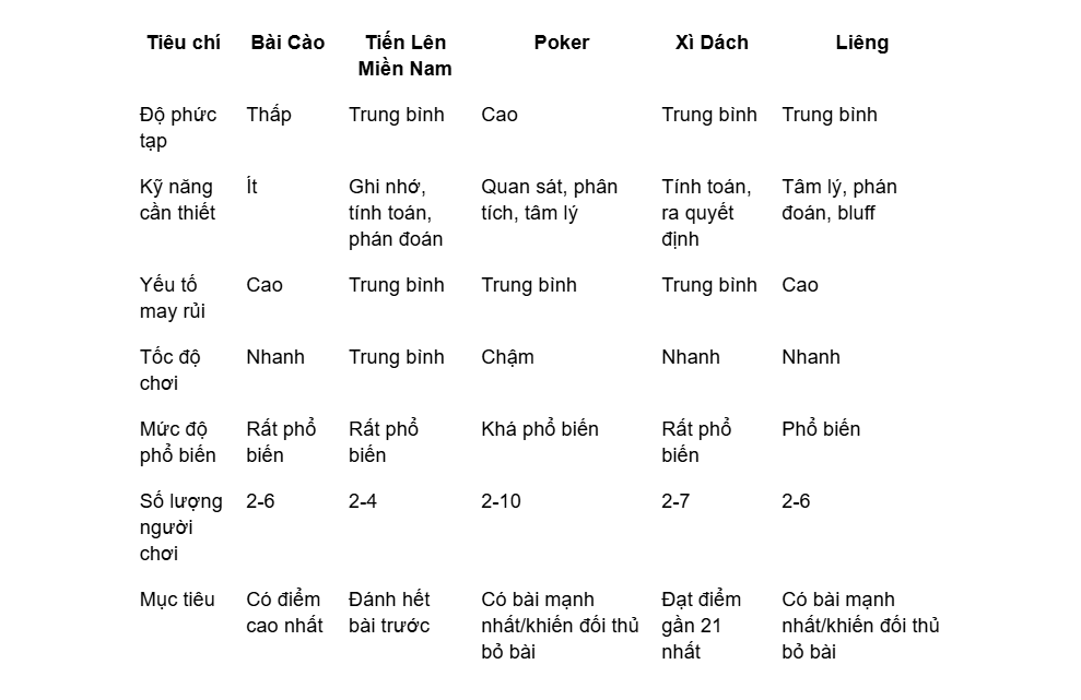 - Mậu Binh: Game bài chiến thuật, đòi hỏi người chơi phải có tư duy sắp xếp và kết hợp các lá bài.